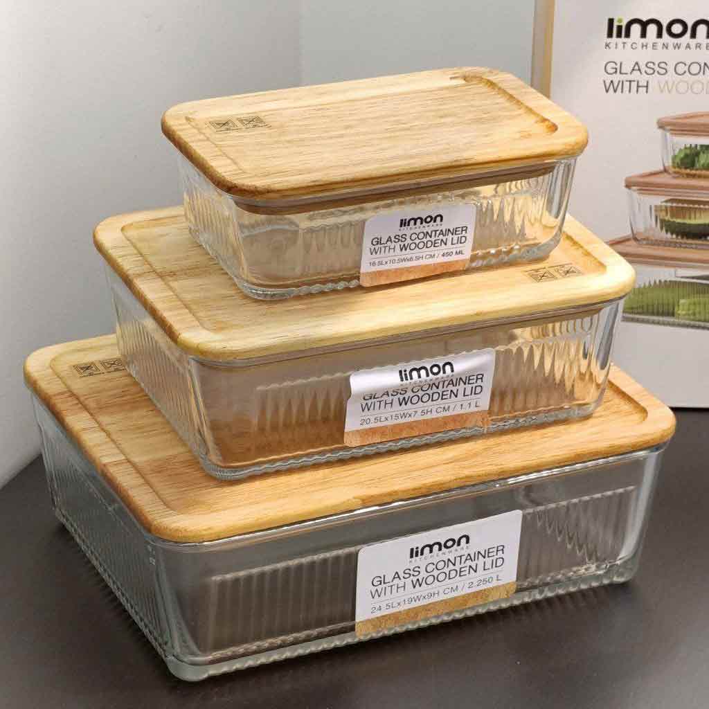 ست ظرف شیشه ای مستطیل در چوبی