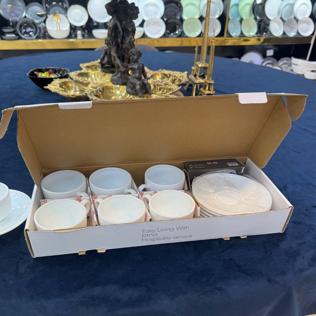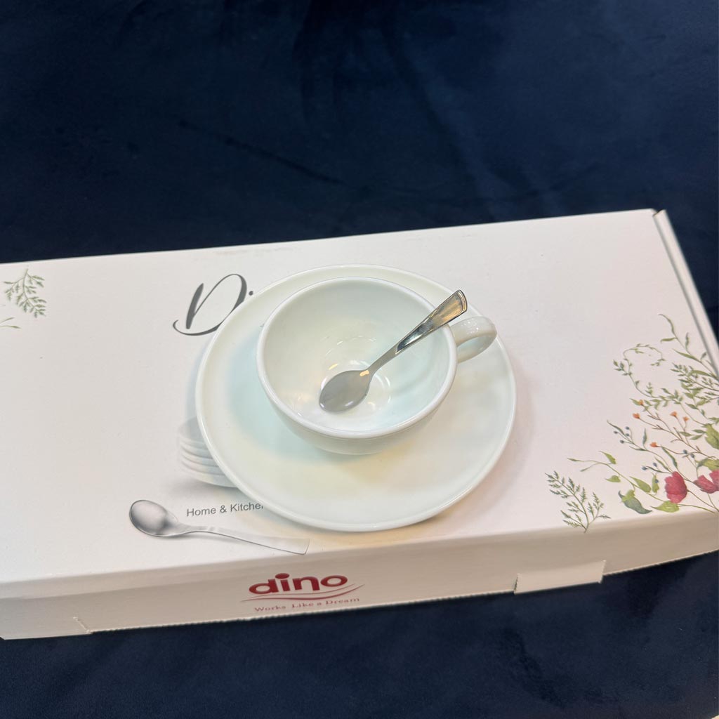 6 نفره شامل 6 عدد فنجان/6عدد نلبکی/ 6 عدد قاشق چایخوری استیل