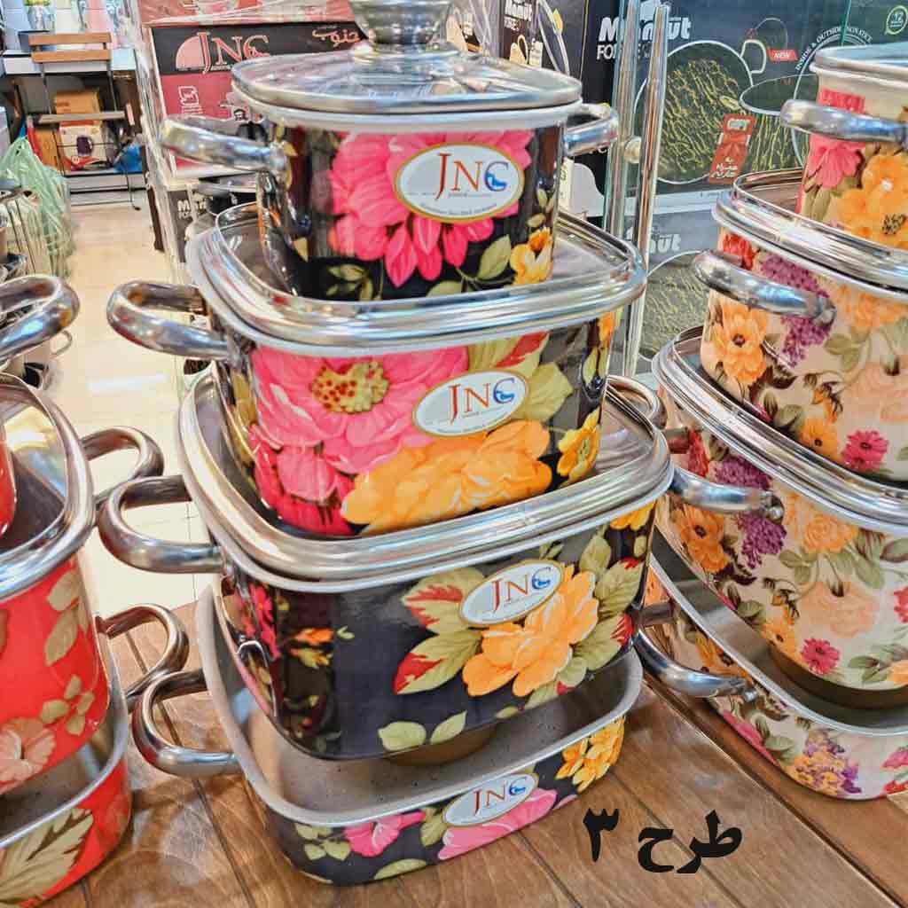 سرویس قابلمه مریع گلدار 7 پارچه