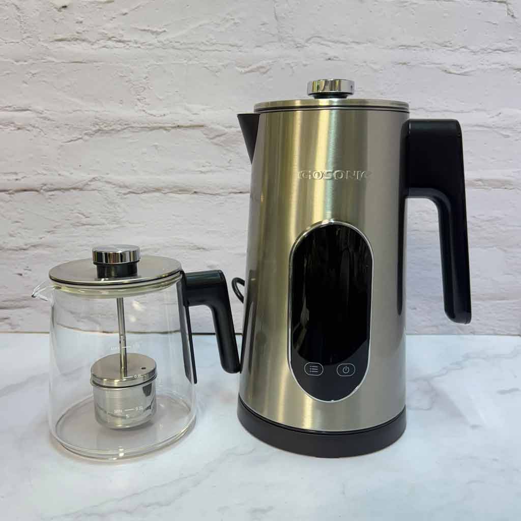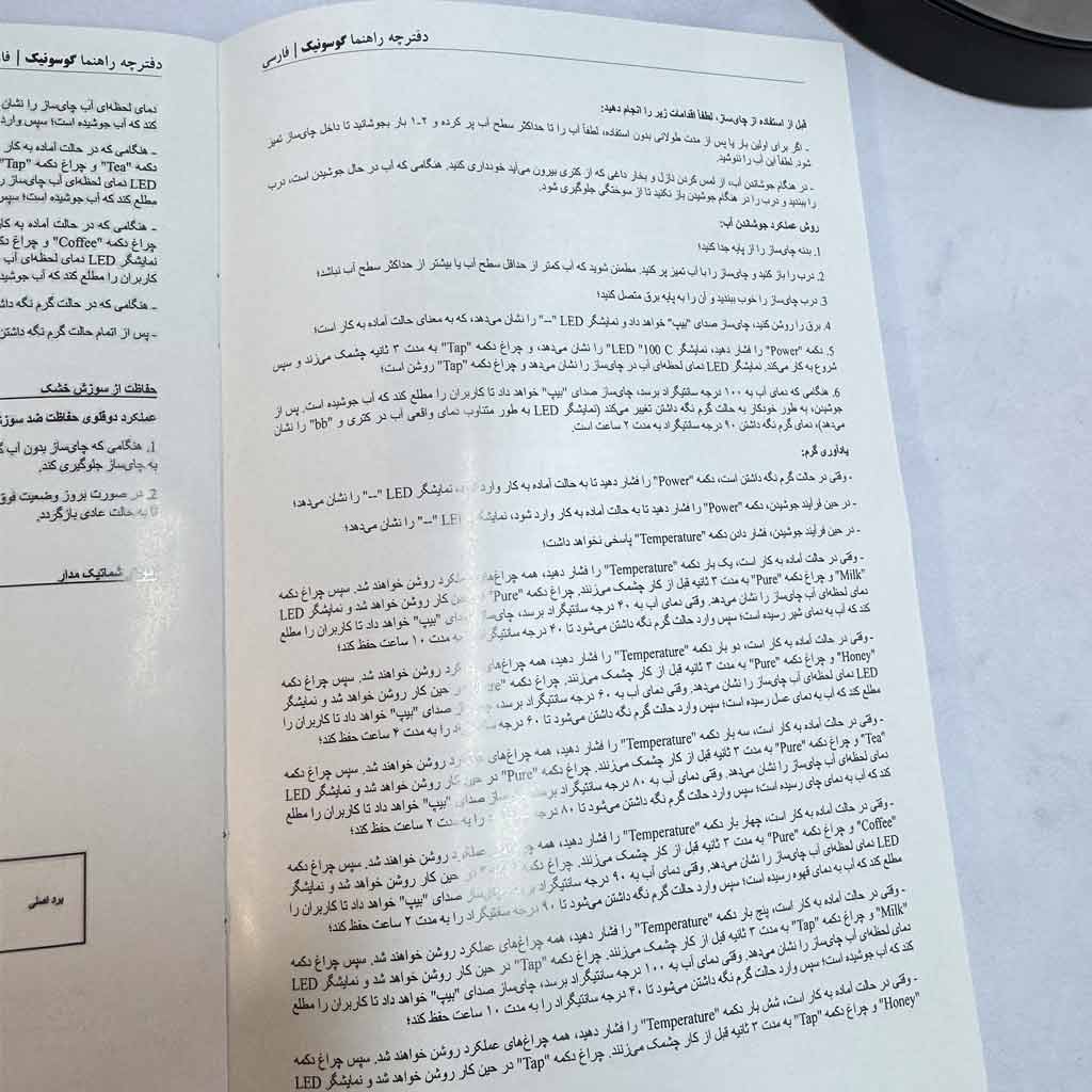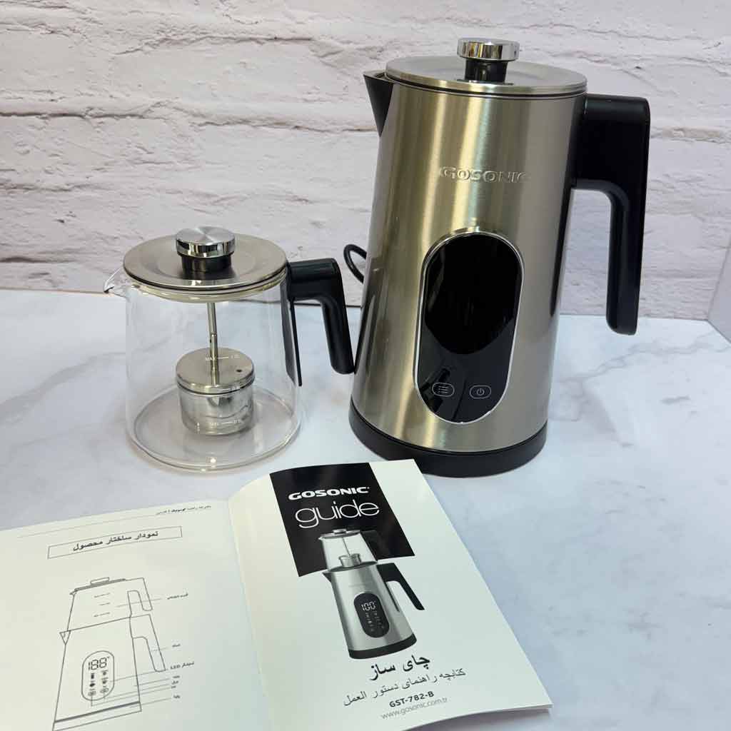 چرخش ۳۶۰ کتری بر روی پایه، بدنه بیرونی و داخلی کتری تماما استیل، گنجایش کتری ۱.۷ لیتر، گنجایش قوری ۱ لیتر