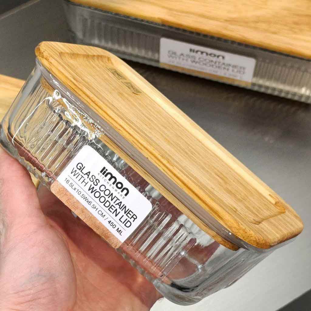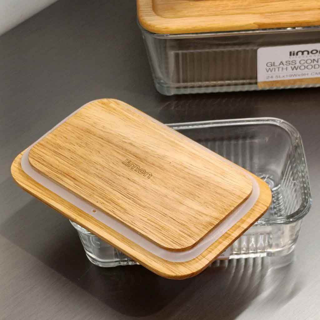 • درب چوبی لوکس: درب این ظرف از چوب باکیفیت ساخته شده که علاوه بر زیبایی، حس طبیعی و گرم به محصول میبخشد. این درب نه تنها ظاهر ظرف را لوکستر میکند، بلکه به دوام آن نیز میافزاید.