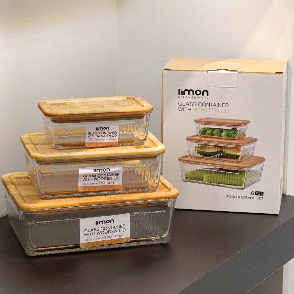 ست ظرف شیشه ای مستطیل در چوبی