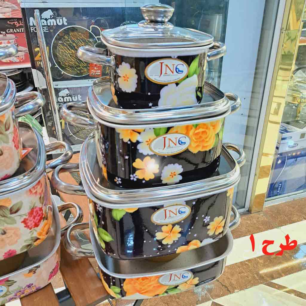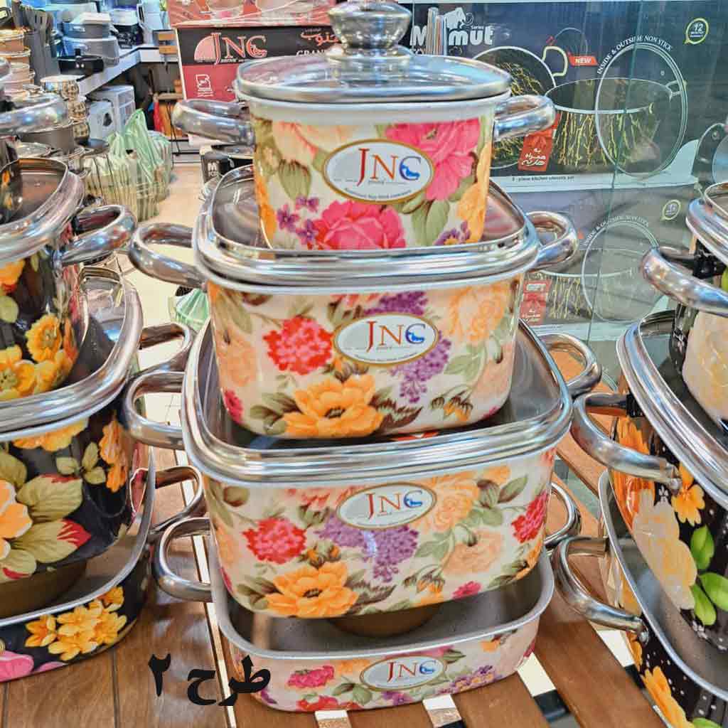 سرویس قابلمه مریع گلدار 7 پارچه