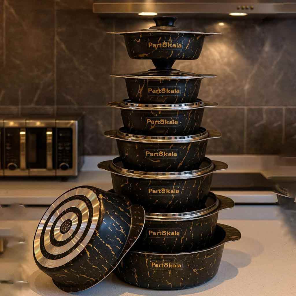 🍳 سرویس قابلمه ۱۴ پارچه مدل سورنا از برند پرتو ✨