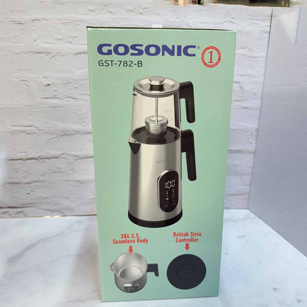 چرخش ۳۶۰ کتری بر روی پایه، بدنه بیرونی و داخلی کتری تماما استیل، گنجایش کتری ۱.۷ لیتر، گنجایش قوری ۱ لیتر