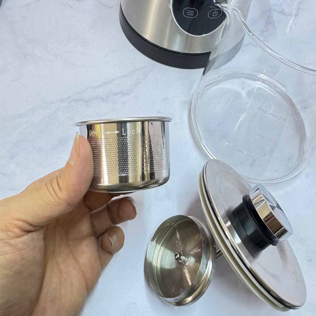 داخل قوری دارای صافی از جنس تمام استیل با طراحی جدید که در زمان دم کشیدن چای میتوانید براحتی تفاله چای را خارج نمایید و از سیاه شدن یا جوشیدن چای جلوگیری کنید.